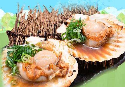 ・殻付きホタテの炭火焼 990円